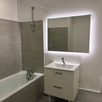 La salle de bains est équipée et fonctionnelle.